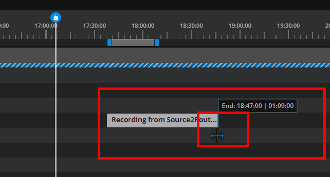 In the event that an incorrect source was selected by mistake, it may be necessary to switch source while the recording is taking place. For a running recording, users can select ‘Switch source’ from the context menu on the timeline:
