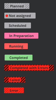 Booking components on the timeline are color-coded and indicative of the recording state. It is also possible to select a second variant (semantic) of the color scheme under settings -> Color scheme.
