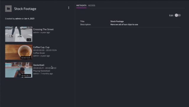 VidiCore 5.5 has a new feature allowing items to be stored multiple times in the same collection and uses metadata to explain why a particular item has been added. This metadata is now displayed when listing a collection’s entities. In the example-application, we use this metadata to store the start and end timecodes which allows you to click on an item and jump the player to that point in time.