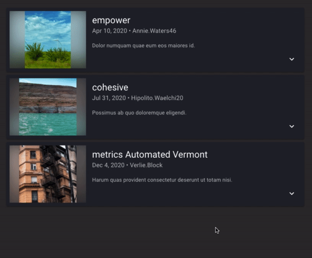 This component will provide a new layout to show search results. The wide design means that more metadata can be show on screen, and if you need even more space it has a expansion panel.
