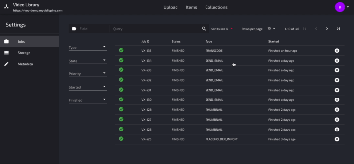 This new component will retrieve the job and parse the metadata and steps to show more information. The menu has options to cancel a running job or restart the job if the error has been cleared.