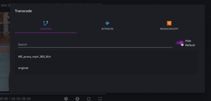 Tab through the different transcoders which have been configured via Vidinet and search for a specific transcode profile. Clicking on the profile will show you key information including a cost estimate before you choose to transcode.