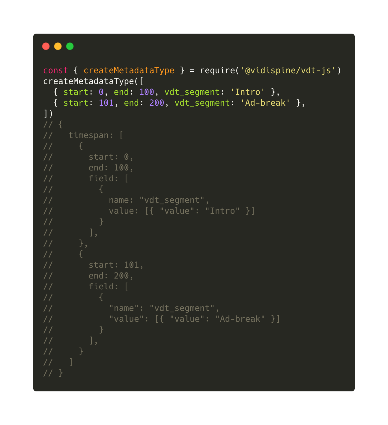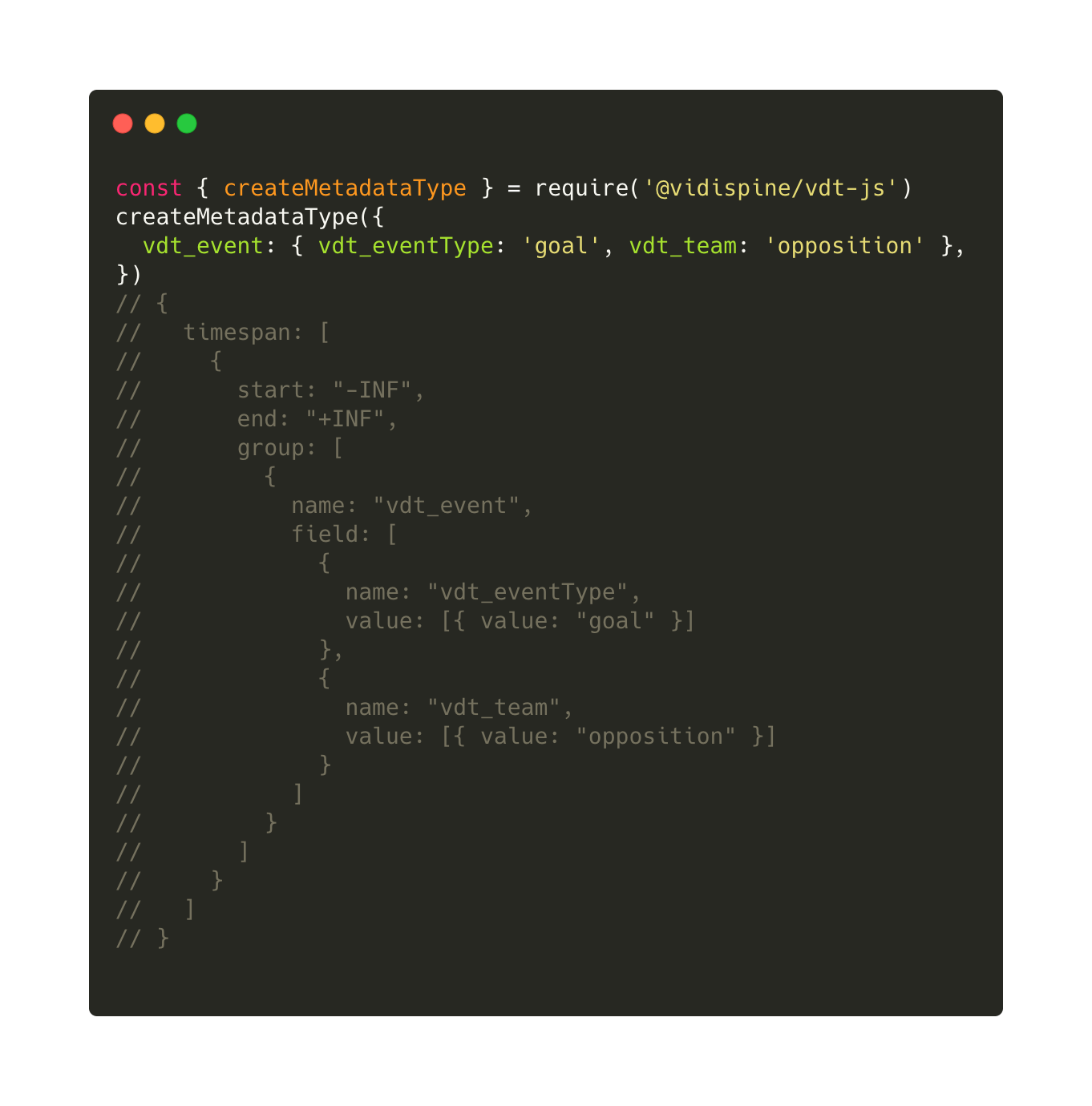We have added more flexibility to transform simple objects into the VidiCore metadata-type. You can now use an array for multiple timespans. Any key which is not start, end, field or group is assumed to be a field name.