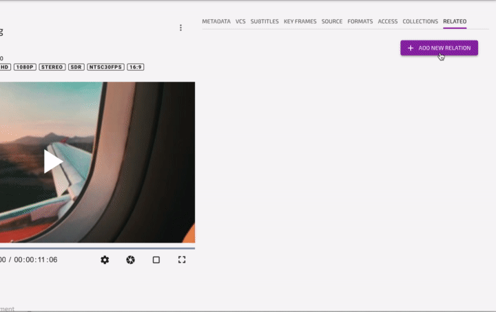 Use the Add Relation dialog to search for items to create a relation to. The item list can be customized to show different metadata and the relationship can be broken via the menu 💔.