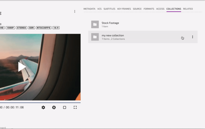 See a list of the collections which an item belongs to. The collection list can be customized to show different metadata and the menu has options to open the collection or remove the item from it.