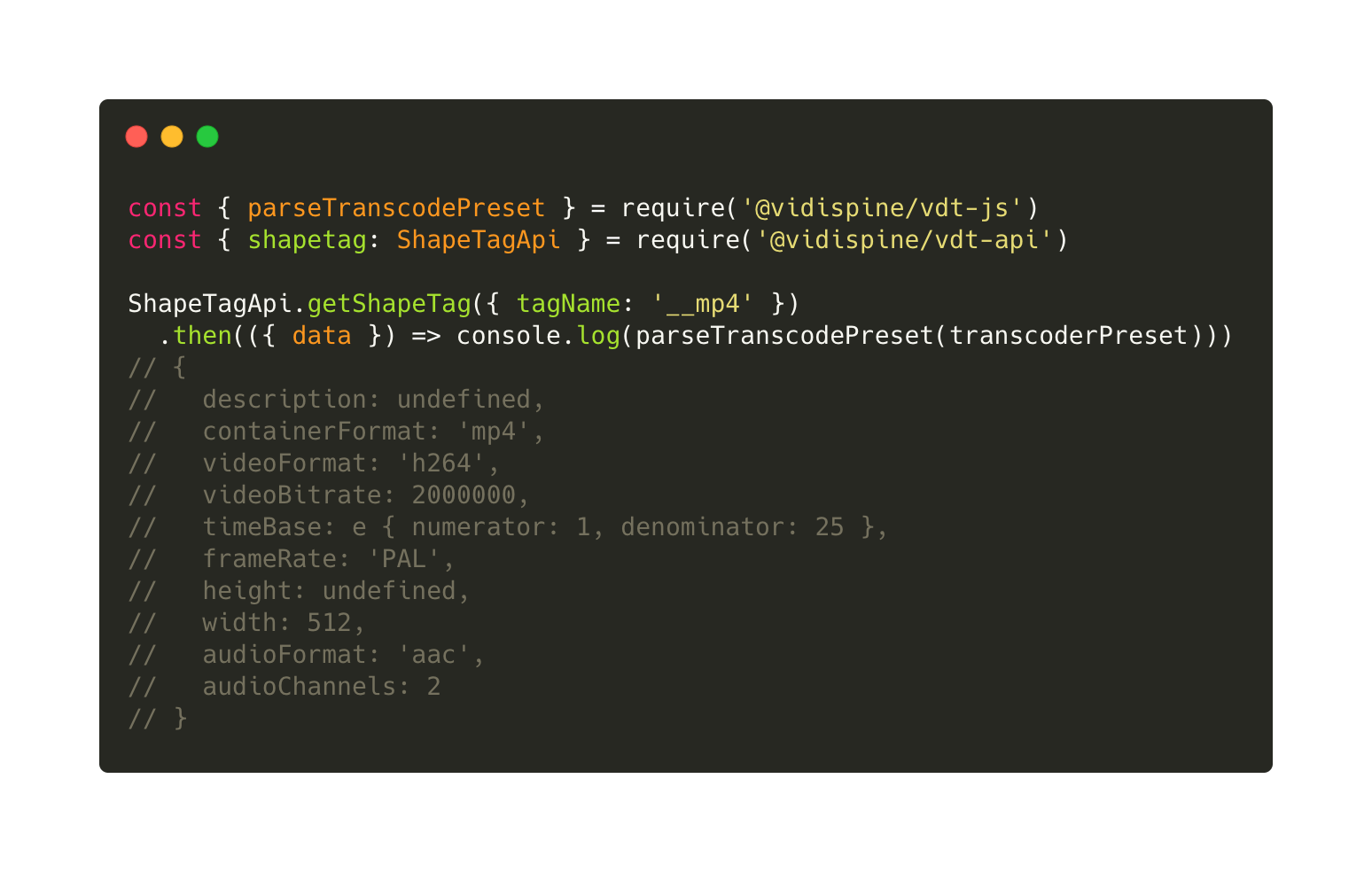 Get a summary of the transcoder preset parameters so that you can find key information such as the frame-rate before deciding which tag to use.