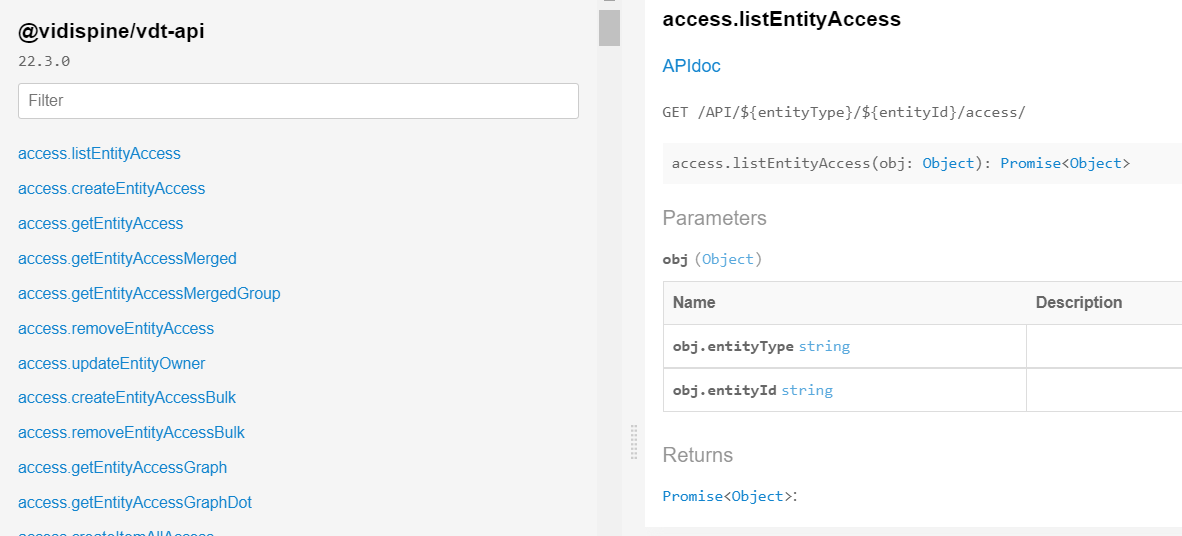 VDT 's API documentation is sourced here: