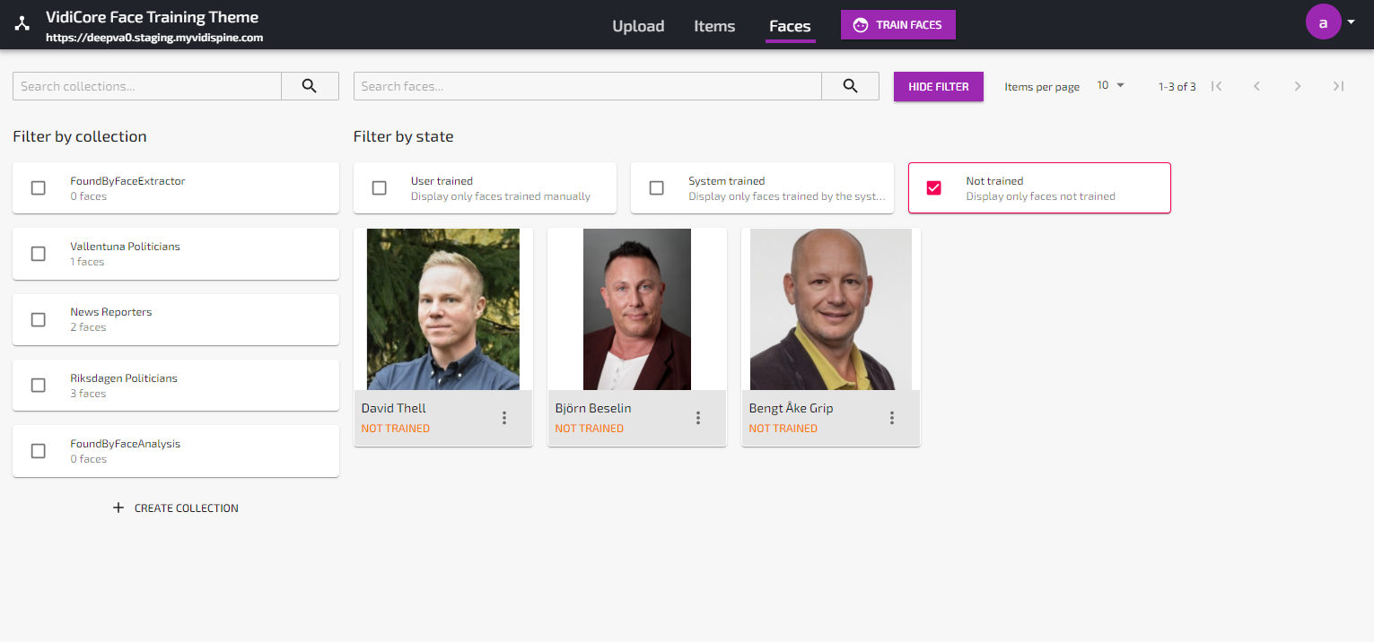 Once uploaded, the faces will be listed in the “Faces”-view with state “Not trained”.