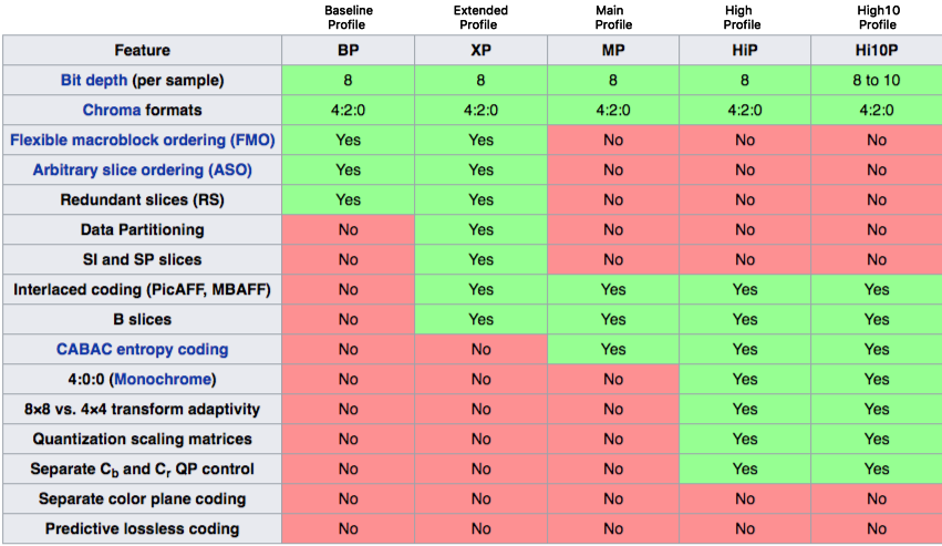 High10 profile goes beyond today's mainstream consumer product capabilities, this profile builds on top of the High Profile—adding support for up to 10 bits per sample of decoded picture precision.