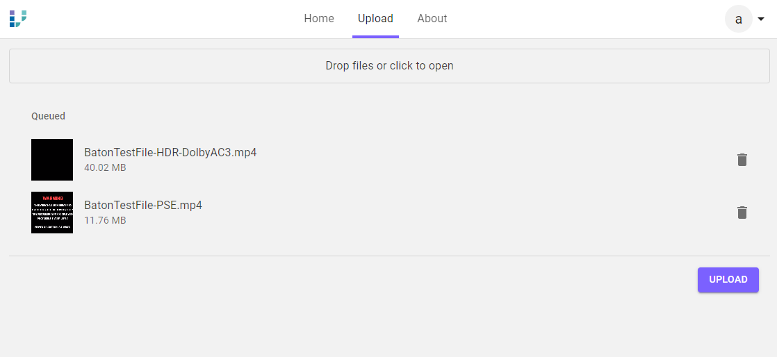 Once you have logged in, you need to populate the system with the media files you want to perform QC analysis on. For this, you can use the Upload function.