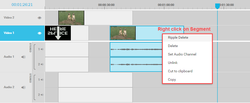Will open a pop up dialogue allowing to select the 2 used channels for the segment. Compare Audio Channel Selection for Timeline [VE UG].