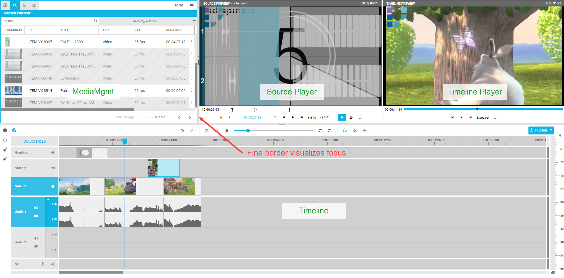 Main Focus areas in VidiEditor with focus on Media Management area