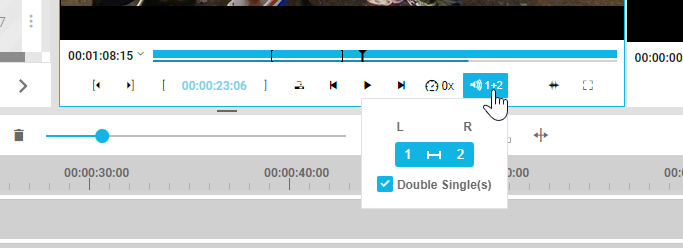 Users can select which audio channels should be played back in the source player. This option also controls which 2 channels are inserted into the timeline when executing the add to timeline action. Please read more about audio channel handling in Audio Channel Selection for Timeline [VE UG] describing the functionalities associated in deeper detail.