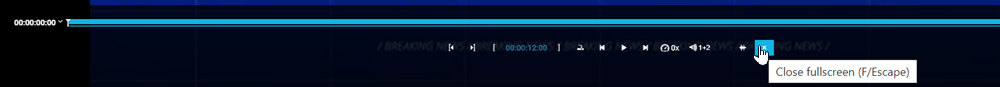 When using the full screen mode, hovering over the bottom edge of the screen will prompt the player's menu options. Clicking on the "X" button will revert the player to its normal mode and return to the standard VidiEditor UI.