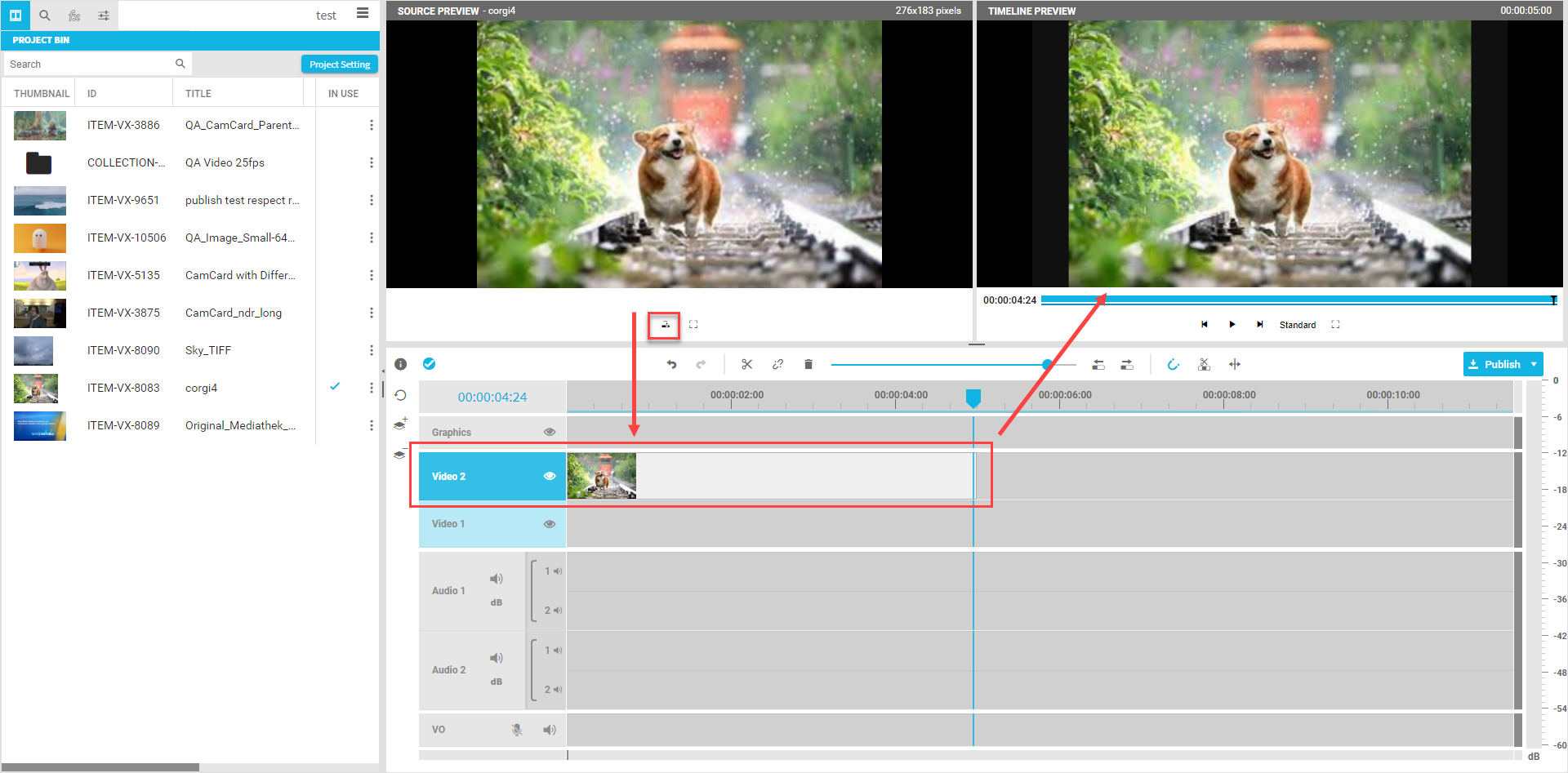 Drag and drop from project bin
