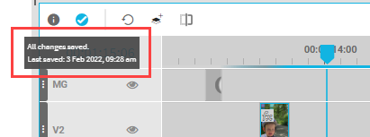 In addition the user can hover (mouse over) on the icon to see the last saved time of the timeline in its tooltip: