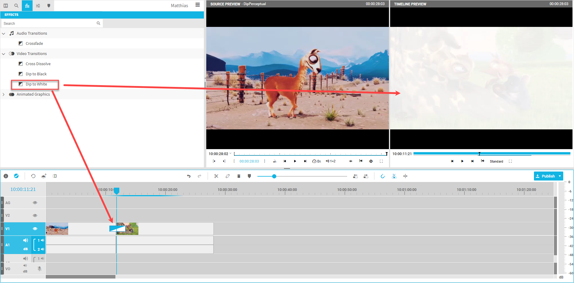 Video dip to white dissolve | Fades from below layer | Fades to below layer | Fades between 2 segments |