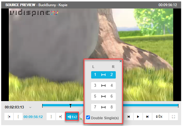 This option can be used to add on channel to the timeline for stereo left and right as a duplicate. The user just selects one channel of the pair and adds to timeline. As a result, the selected channel will be added and duplicated. Also the user can select just one channel and unselect the “double single(s)“ option. As a result, only the one channel will be added while the second channel will be added as a silent signal.