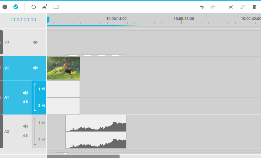 This will result in a minimized track that saves most of the screen size but still indicates the presence of segments inside the timeline. A result can look as follows, where the AG, VO and different audio and video tracks are hidden: