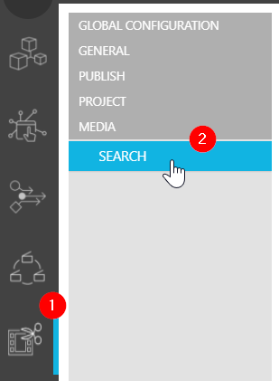 The manner in which media can be searched for can be configured in ConfigPortal under the VidiEditor → Project → Search page. It allows one to configure metadata fields of the chosen metadata model into the result grid of the media search. In ConfigPortal, an ordered list of metadata can be chosen defining the columns of the media search dialogue in VidiEditor.