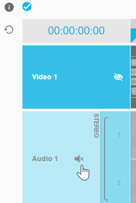 The audio and video tracks content can be enabled or disabled individually. While video track inclusion in the timeline can be toggled on/off via the "Eye" icon, audio track inclusion can be toggled on/off via the "Speaker" icon, effectively muting the audio. As a result, the timeline playback will ignore unselected tracks.