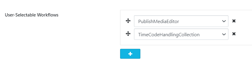 This option is only available if “Transcoding Option” is set to “VidiFlow Workflow“. Users can specify which workflows are triggered when publishing a sequence in VidiEditor. It is possible to select multiple workflows from all VidiFlow workflows and their order. The pool of available workflows is determined by those created via the VidiFlow Workflow Designer. Also, the ordering of the workflows defines the ordering for user selection and the default parameter used. As a result, once can see a workflow dropdown in VidiEditor publish dialogue and select one to be triggered for publish. The first one configured acts as default value.