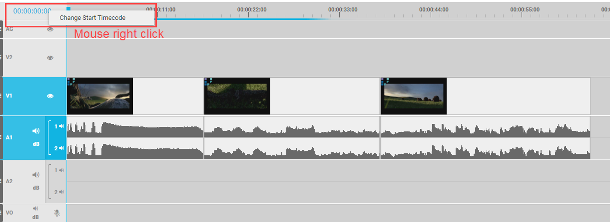 The start timecode and timecode navigation in the timeline player will change