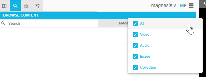 Switch over to the “Browse Content” tab in the media management area. Browse Content (Search) [VE UG]