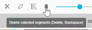 Cut Segment: Performs a segment cut wherever the playhead is positioned in the timeline. The cut affects all segments of the selected track. Segments on not selected tracks will not be cut.