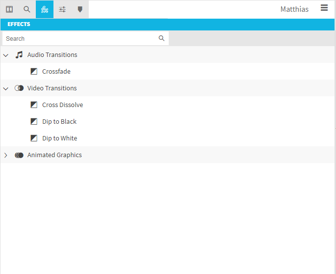 After which, the effect will be added with its default length configured in ConfigPortal (see Timeline Configuration Parameters [VE OG] ). It can be easily adjusted with trimming the transitions length directly on the timeline or setting the in / out in the settings pane after selecting a transition.