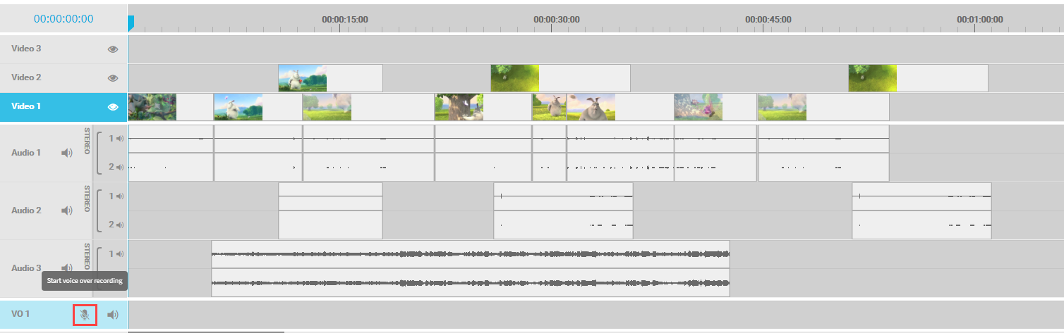 As the usage of the microphone should be no problem, the user can just click on the record symbol on the voice-over track to start a recording: