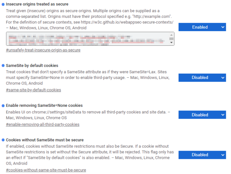 VidiEditor should be used with SSL termination. If this is not the case, the following flags in Chrome were needed to operate VidiEditor without SSL termination.