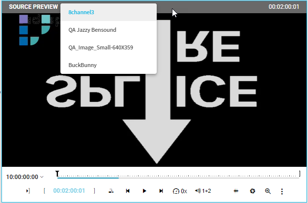 The Source Preview player offers users a convenient way to load previously opened items per project session. A dropdown option will be displayed if there is more than one item being loaded in the Source Preview player.