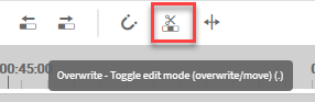 The move / overwrite mode can be toggled in the timeline toolbar and determines how segments influence each other when positioning them on the timeline. The mode is relevant when 2 segments are used at the same timecode position and track on the the timeline. As long as this is not the case, the move / overwrite mode will not change any behavior.