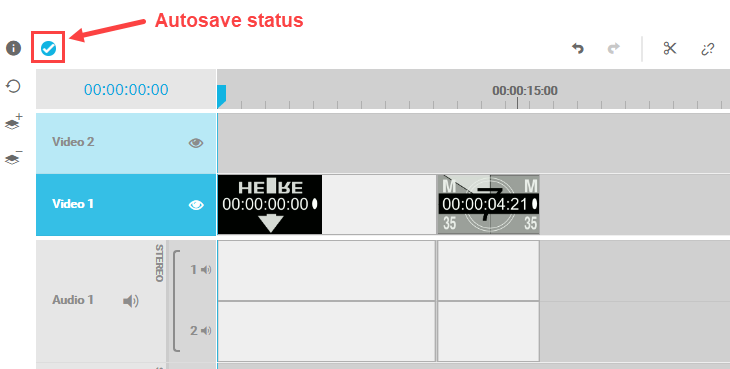 Usually it is not needed to manually save the timeline status as the auto save option ensures the work is saved frequently. Anyway it might happen that the auto save failed on some point due to a broken network connection or infrastructural problems. So the user always has the possibility of manually saving the timeline status by clicking on the auto save indicator or while using a keyboard shortcut (see: Timeline Shortcuts [VE UG]).