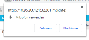 To start a voice-over recording the web page needs access to the microphone (compare and Voice-Over Configuration [VE OG]). This depends on the settings of the used browser. Often this access can be granted by the user per web page. In this case the browser will ask for access when doing the first voice-over recording: