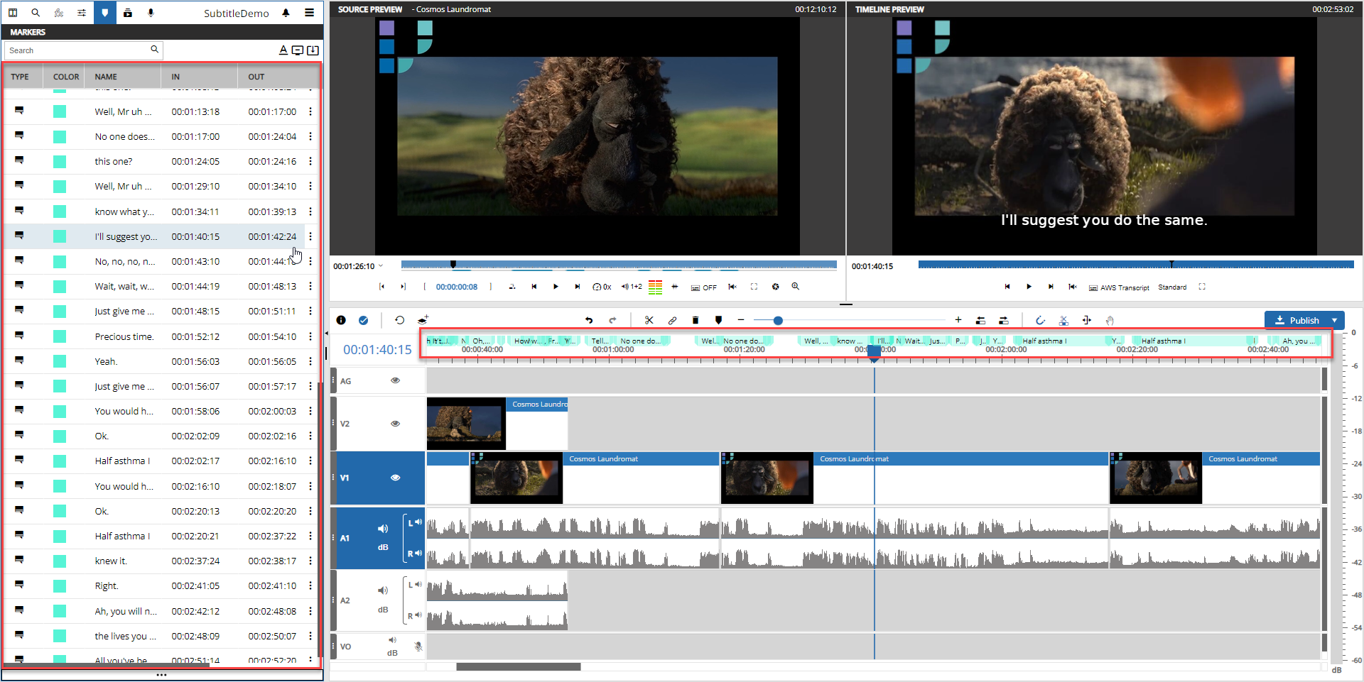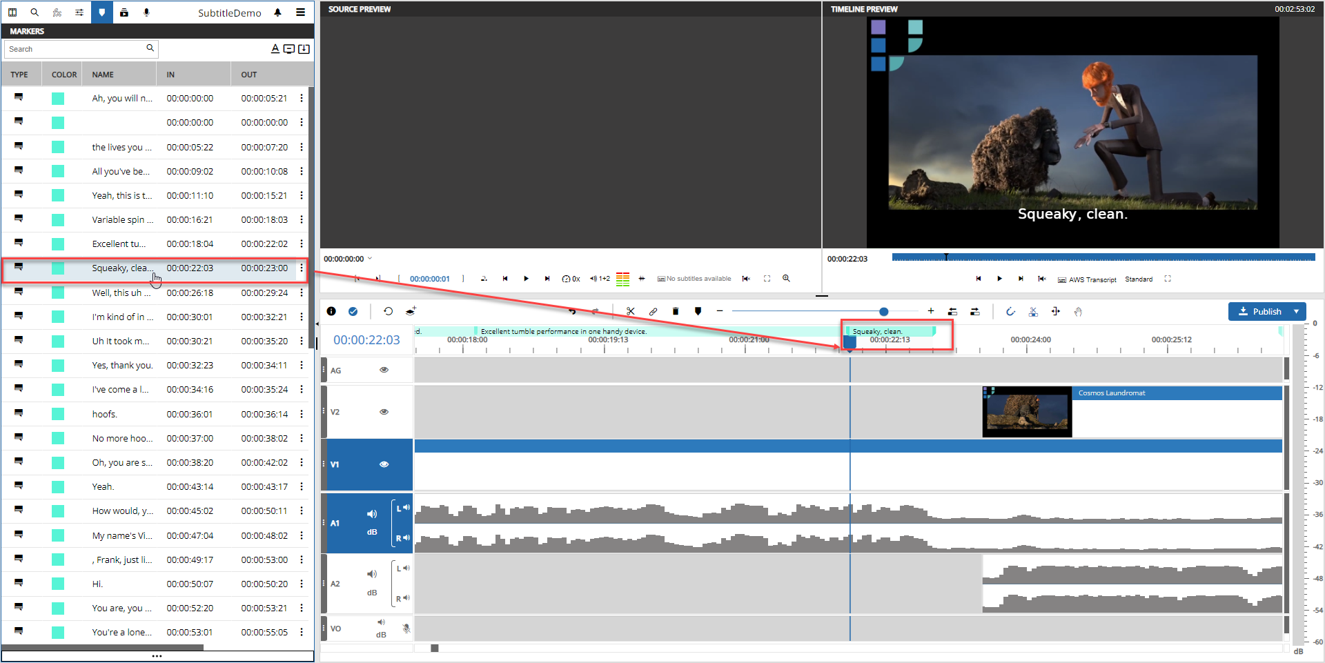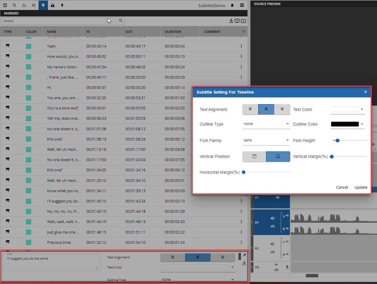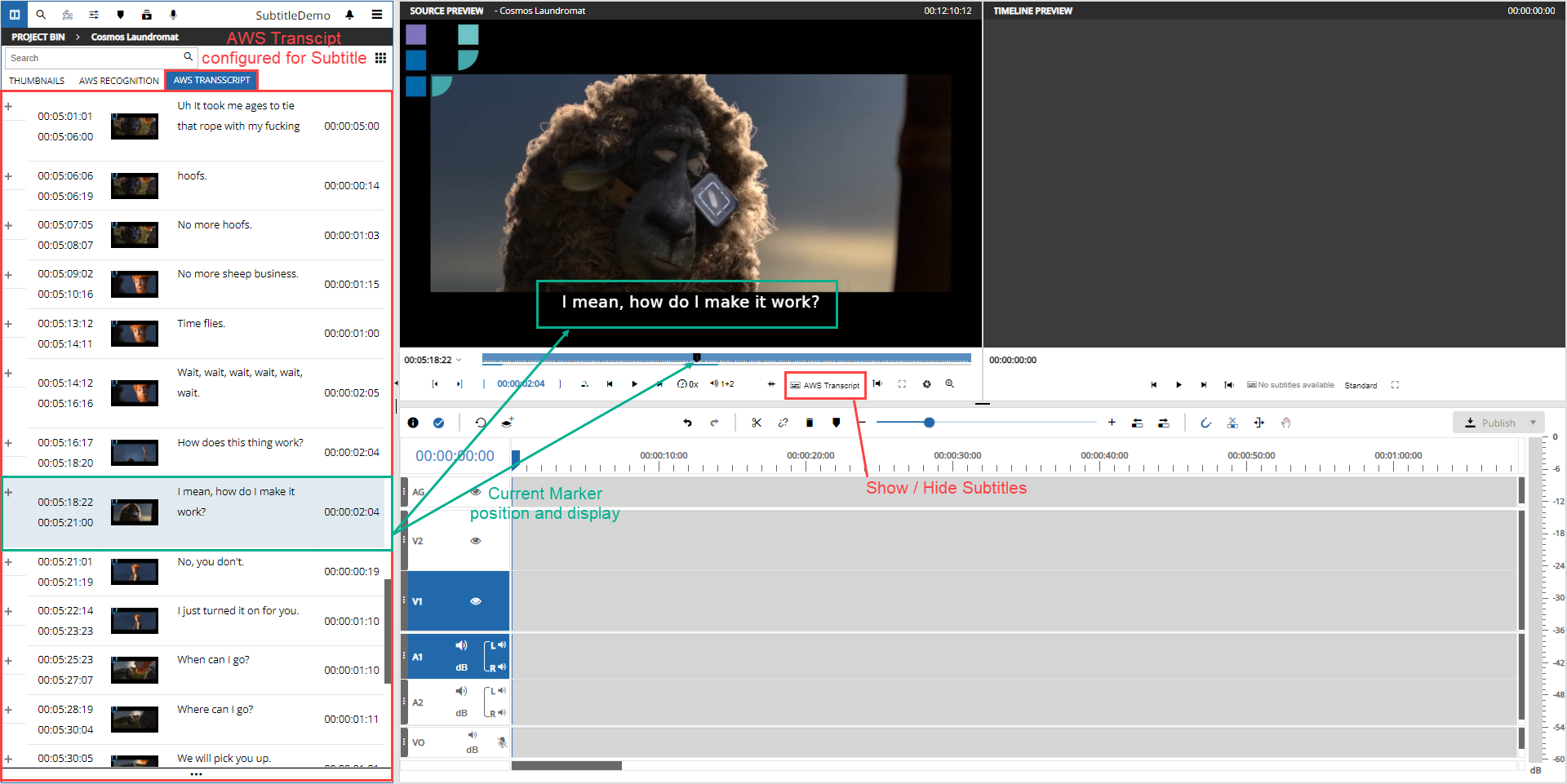 Also the text of the subtitle is previewed on the marker itself for better orientation.