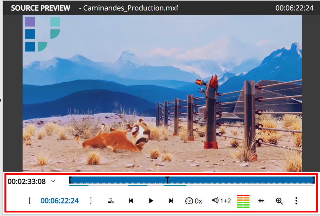 Apart from the typical player functions, such as play and pause, users are able to skip on a frame by frame basis. This is particularly helpful when accurately specifying the insertion of IO points. Naturally, frame skipping and the change in TC is indicated on the timecode area below the player.
