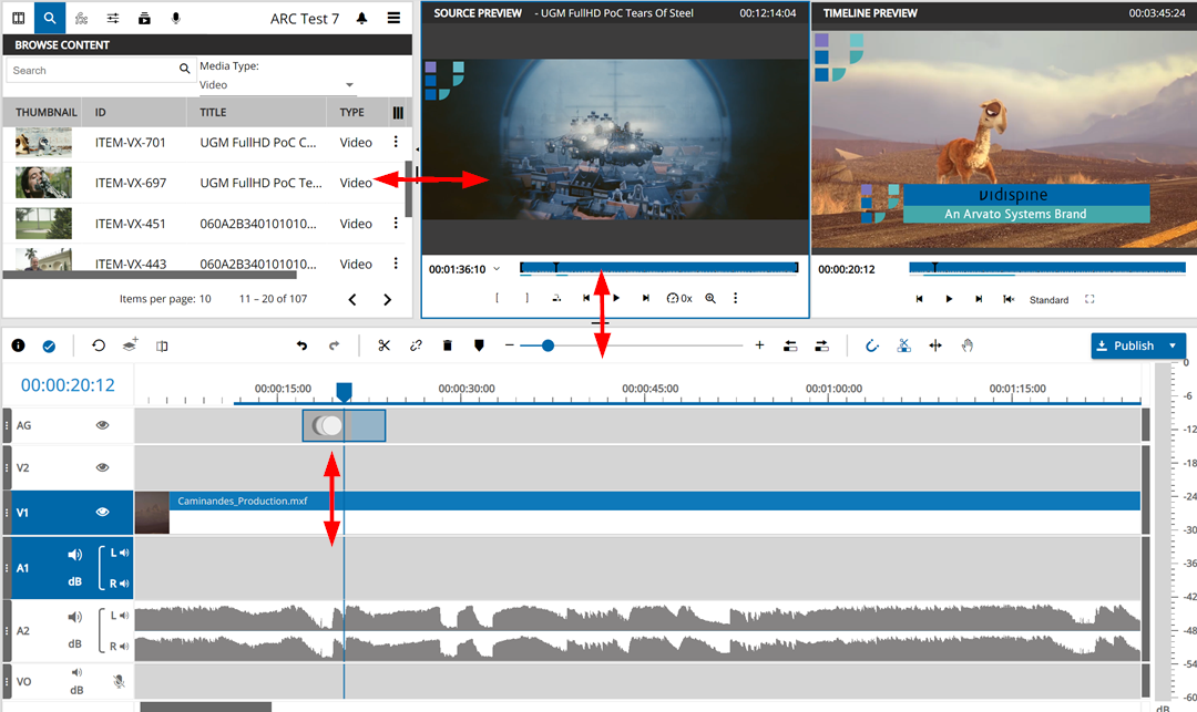 Simply drag the splitter to adjust the parts of VidiEditor as needed.
