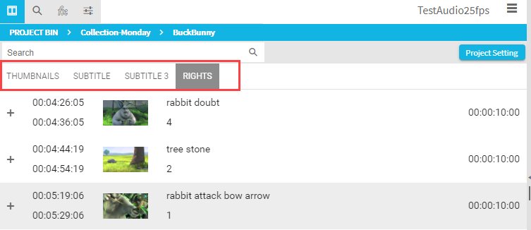 As of VidiEditor 21.3 on an eventlist view is available in the media managements project bin Event List View. Depending on the eventlist used, this is customizable. An event list is a list of timecodes connection to an item holding metadata information interesting. It can be utilized by various services writing those kind of event lists. For example:
