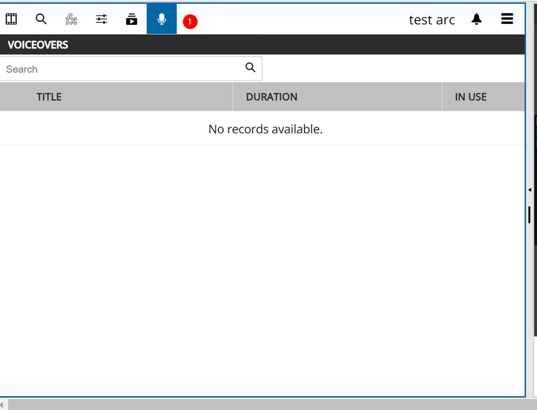 So as long as the data is not ingested yet the user has an overview about the voice-overs existing locally and that are associated to the current project. This allows to park different takes or to execute needed operations on the local voice-overs. The view looks as follows: