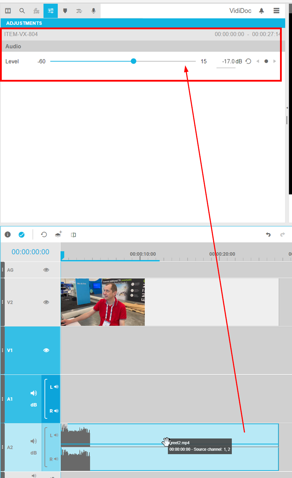 Please note that the amount of audio levelling options depend on the number of linked stereo pairs for 1 video. An audio level control is displayed per stereo pair.