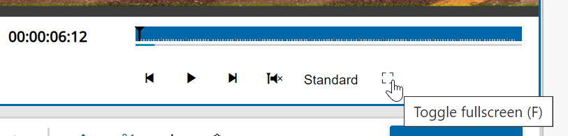 When using the fullscreen mode, hovering over the bottom edge of the screen will prompt the player's menu options. Clicking on the "X" button will revert the player to its normal mode and return to the standard VidiEditor UI.