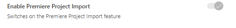 This boolean switch enables / disable the possibility of finding Premiere projects in the VidiEditor search. Its functionality is based on MediaPortal and Helmut project syncing. It would allow a user to find synced projects and import them if they have valid timeline sequences attached. The syncing of the Adobe data is not part of VidiEditor it relies on the correct data existing in the VidiCore database written by another application executing this option correctly.