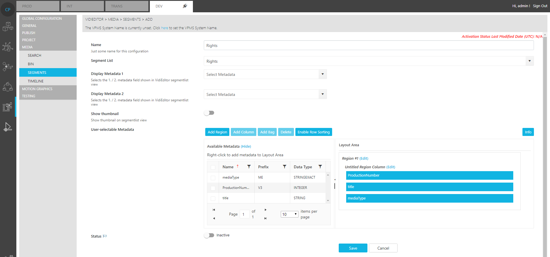 Defining the data source used as event list. Event lists are persisted as metadata groups and metadata groups configured into the system design can be selected from this dropdown to define the as usable for VidiEditor. The dropdown points to the global metadata groups settings.