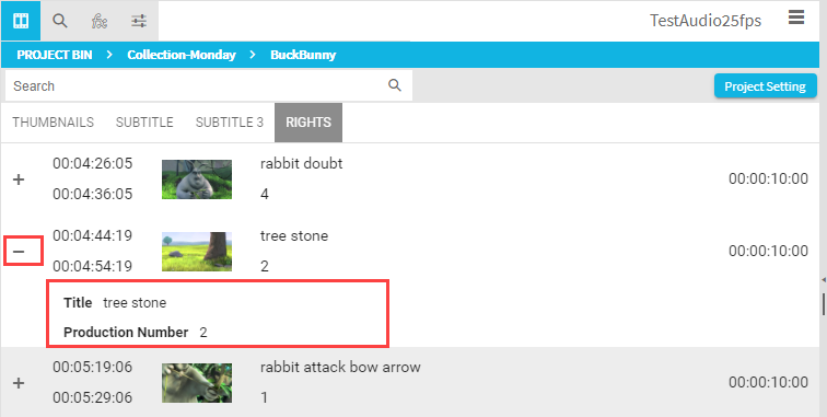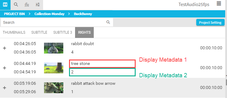 Those 2 fields allow to set 2 metadata fields from the selected metadata group to be displayed in the event list view. This result in following data rows displayed in VidiEditor: