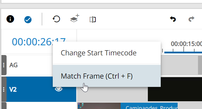 Use keyboard shortcut Ctrl+ F or the context menu entry on the timelines timecode field to load the chosen content in the Source Player.