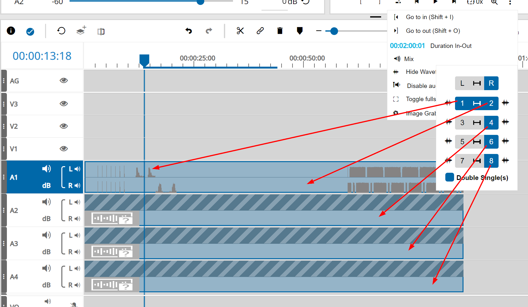 Audio Channel Selection for Timeline