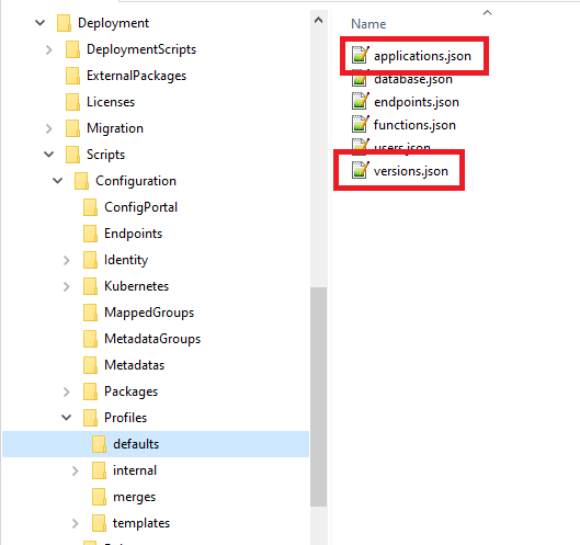Versions.json and applications.json are both located in the Deployment\Scripts\Configuration\Profiles\defaults folder of the deployment package