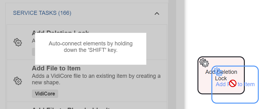 Service Tasks | All VidiFlow service tasks available in the system. This can include product tasks as well as customer specific tasks. |
